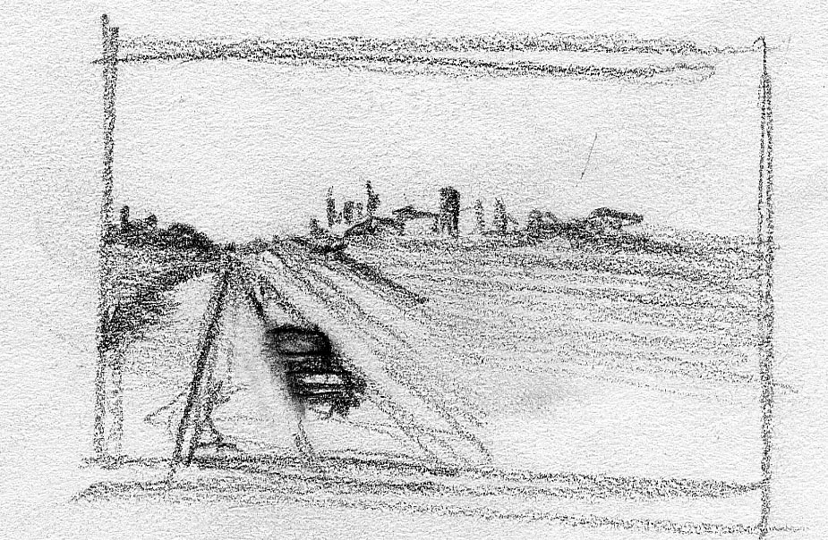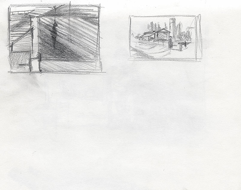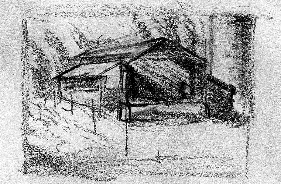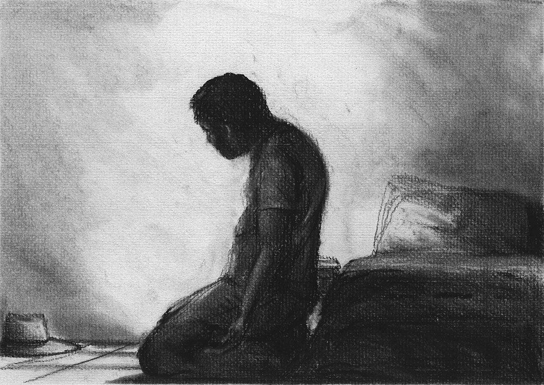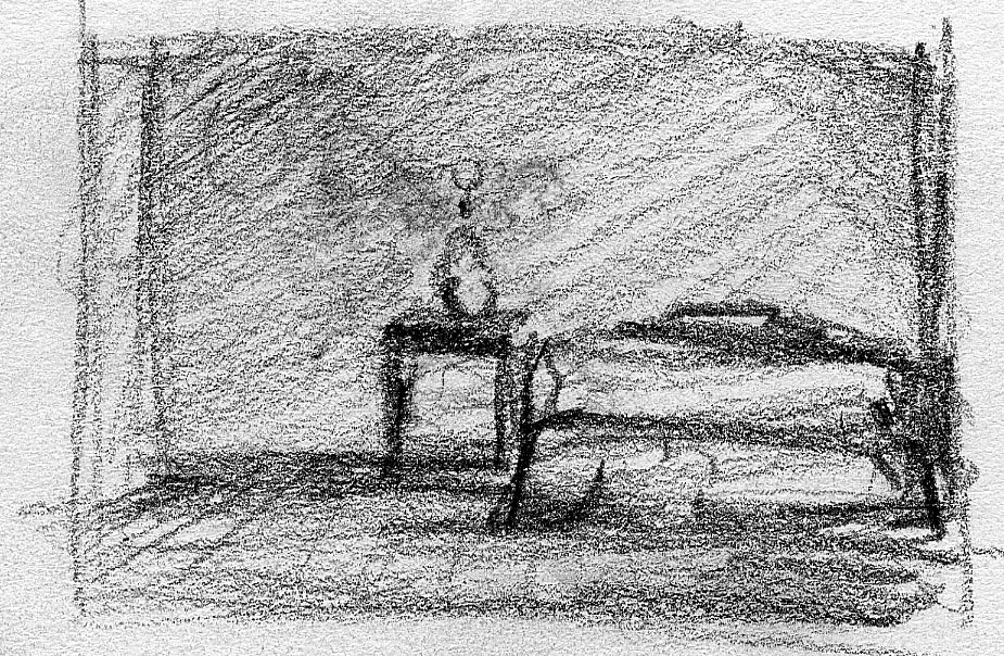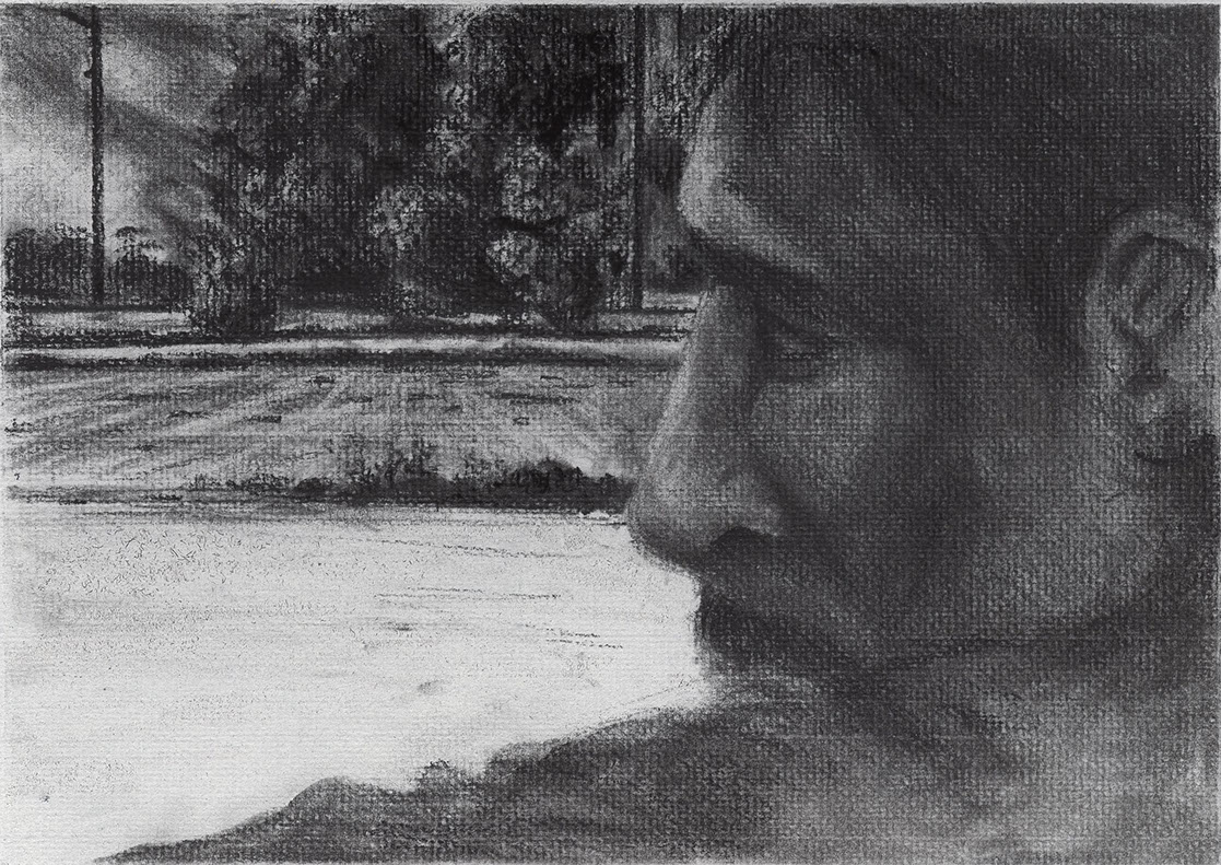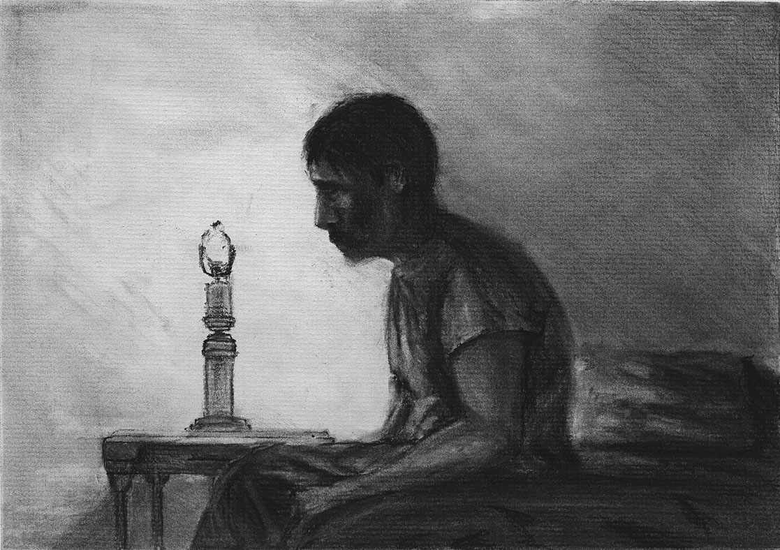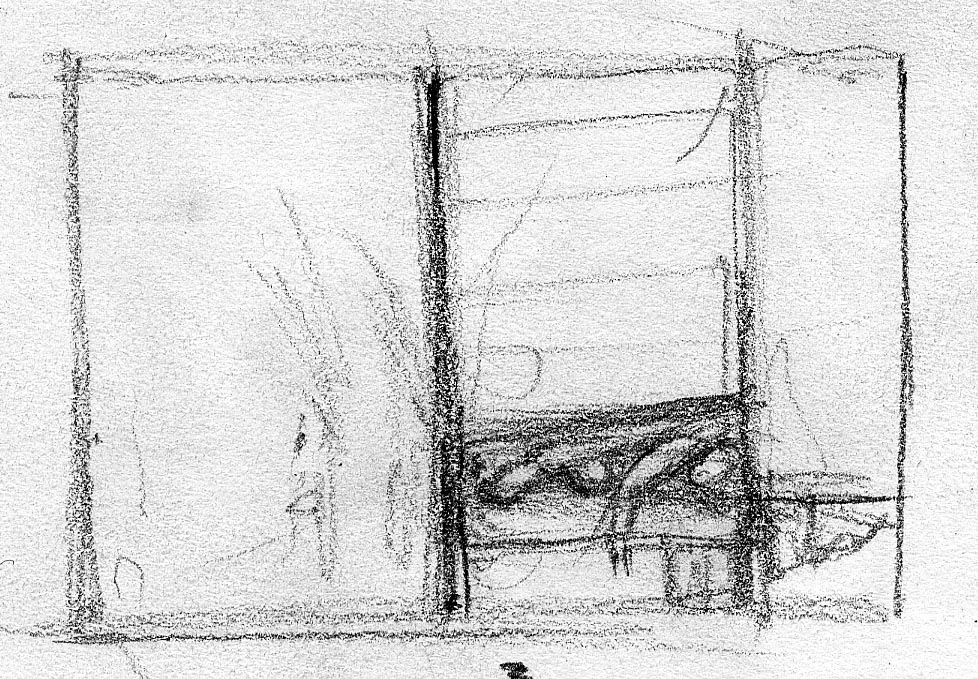 The short film, Esperando, features 25 charcoal drawings strung together, overlapped, and repeated to tell the story of a solitary field worker as he awaits news from a family member attempting to cross the border. The image of the dead migrants in the abandoned tractor-trailer may be a memory, a dream, or a premonition. Whatever it is, the pain or doubt, the torture of esperando – waiting/hoping – inspires an image of his own death, hanging himself by the rafter of an abandoned barn, the idea of which brings the religious man to his knees begging forgiveness.