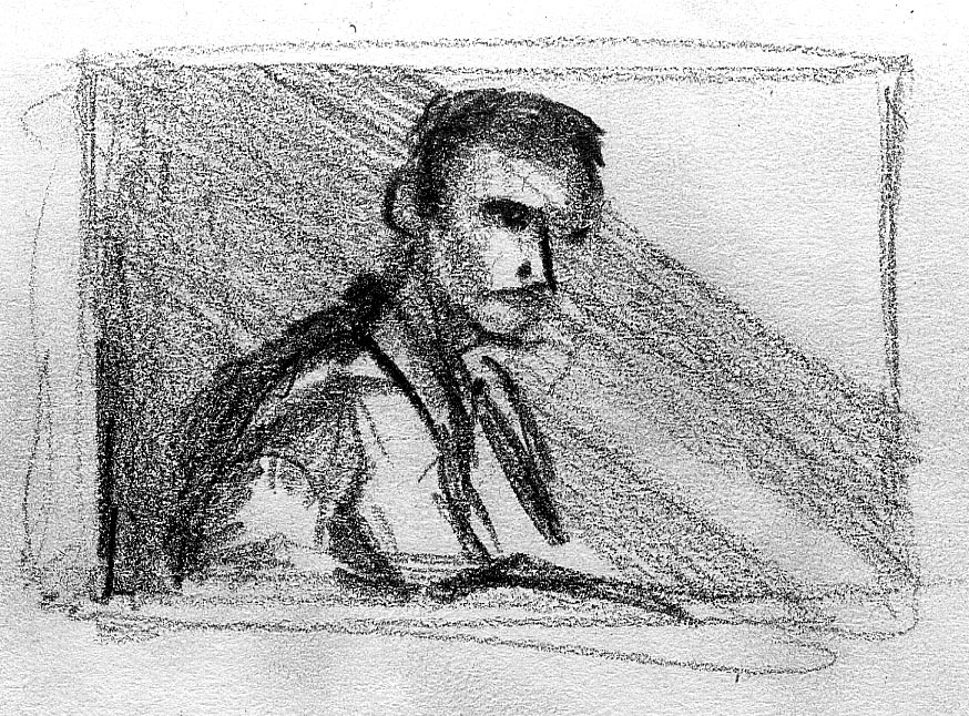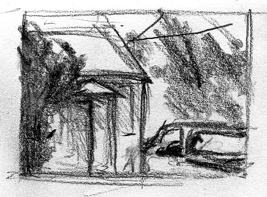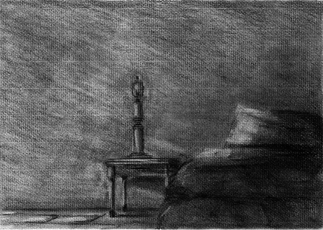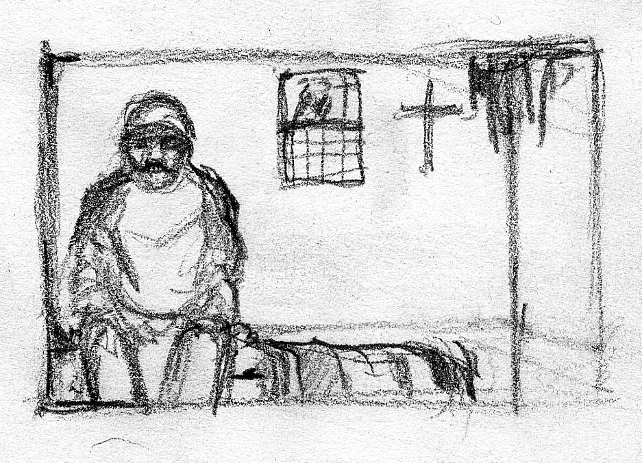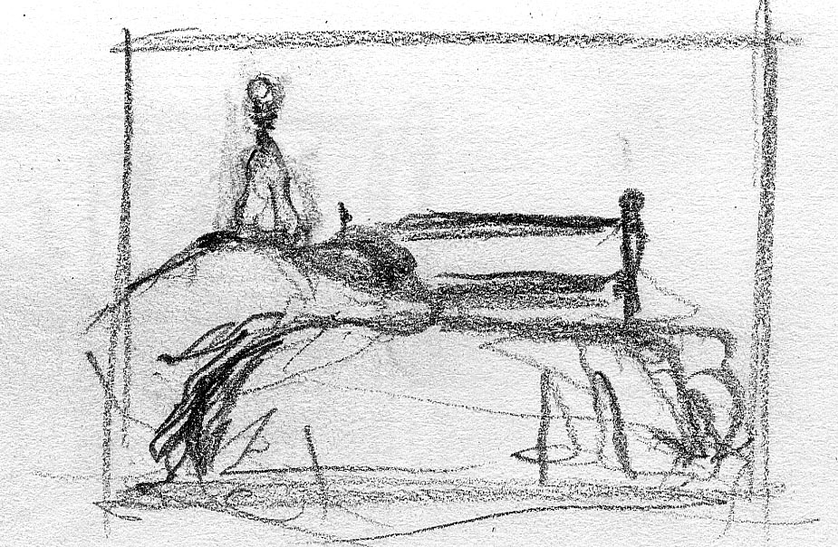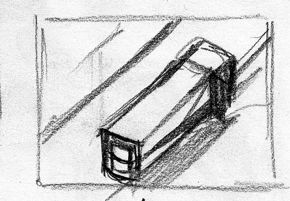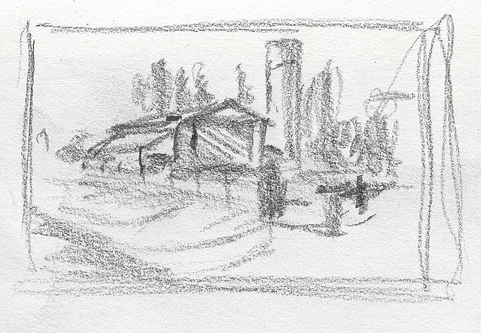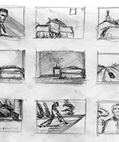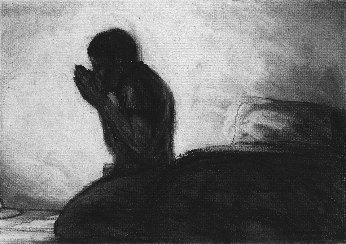 The short film, Esperando, features 25 charcoal drawings strung together, overlapped, and repeated to tell the story of a solitary field worker as he awaits news from a family member attempting to cross the border. The image of the dead migrants in the abandoned tractor-trailer may be a memory, a dream, or a premonition. Whatever it is, the pain or doubt, the torture of esperando – waiting/hoping – inspires an image of his own death, hanging himself by the rafter of an abandoned barn, the idea of which brings the religious man to his knees begging forgiveness.